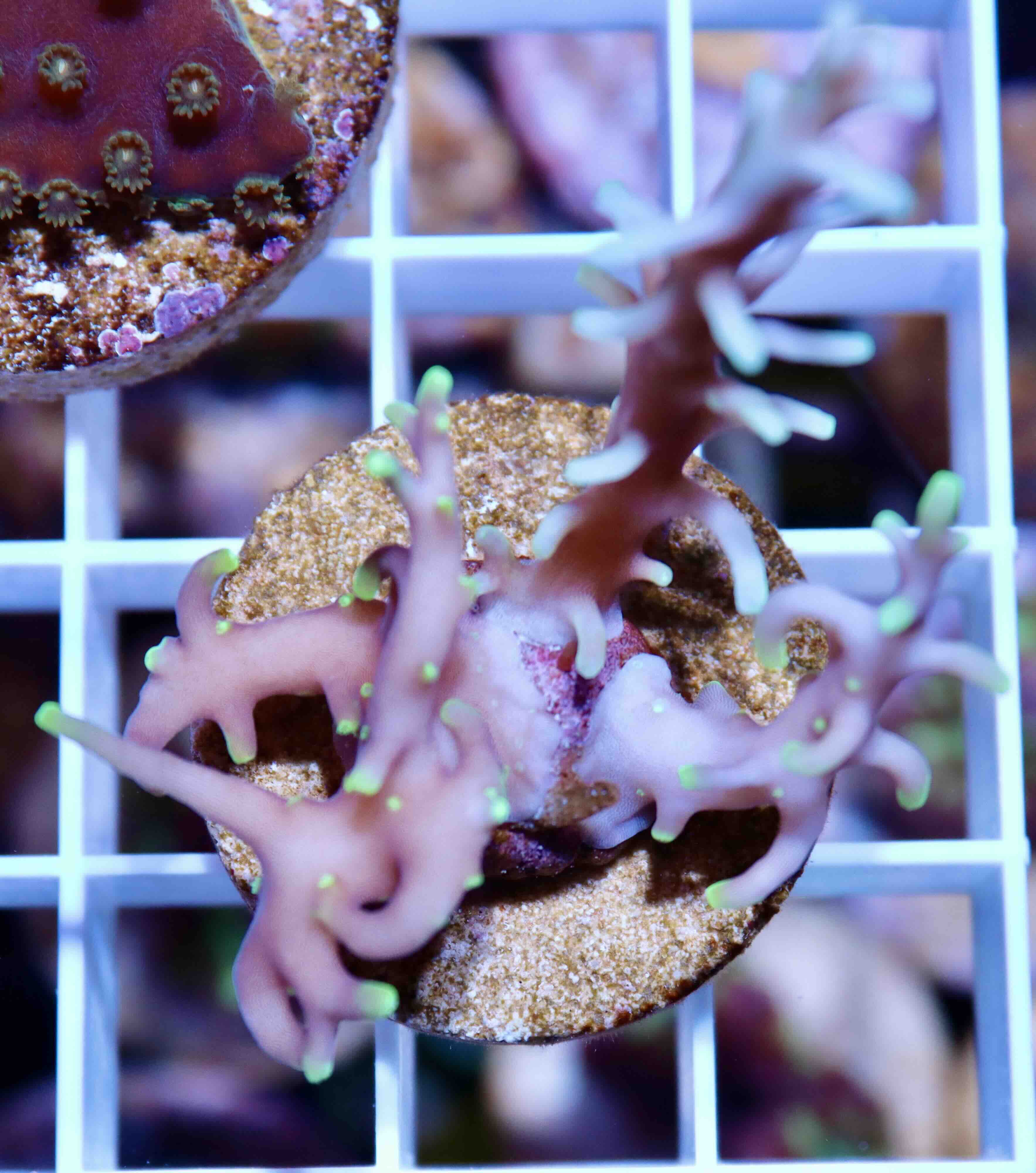 Jedná se o velmi vzácnou hlubinnou acropory. Její zbarvení je červené/fialová s jasně zelenými špičkami. Tomuto druhu se daří i ve středně osvětlených míst akváriu - střední část útesu.