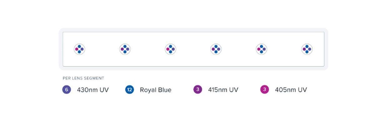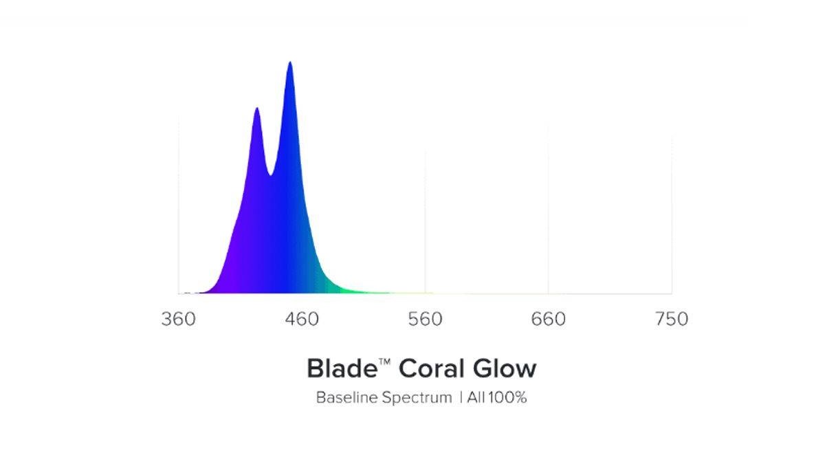 Blade Glow je nekompromisní v misi fluorescence korálů. Spektrální vrcholy ve spodním rozsahu modré a horním rozsahu UV spektra, které stimulují korálovou fluorescenci a zvýrazňují nadpozemské barvy, díky nimž akvárium září.