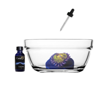 Přesun do akvária: Korál opatrně vyjměte a vložte do akvária nebo do korálového dipu proti parazitům podle návodu (např. CoralRX...) - následně je však důležité korál před vložením do akvária důkladně opláchnout v mořské vodě. (Postup s dipem je dobré dodržovat, ale není nezbytný - koráli u nás již tímto postupem procházejí).