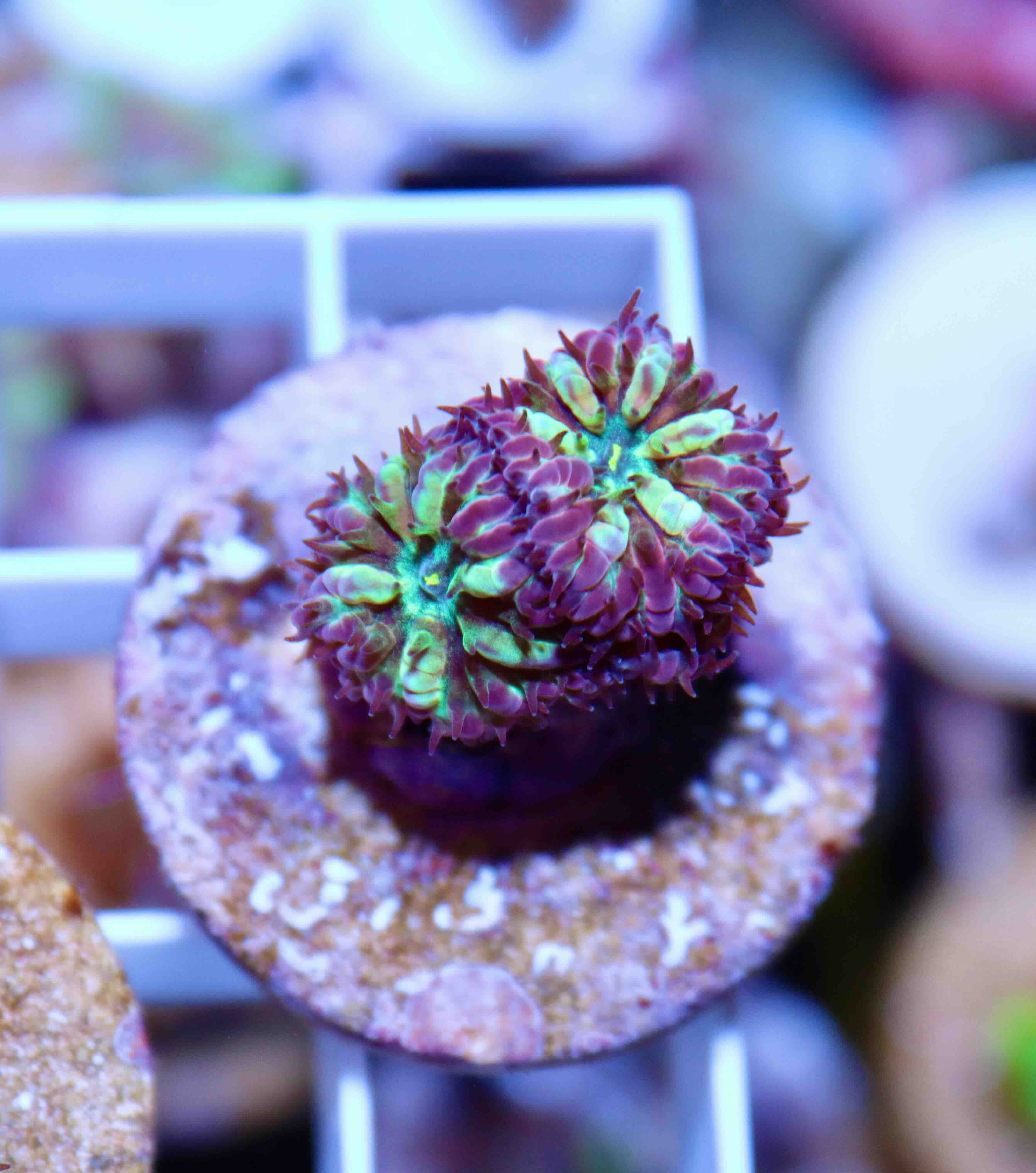 Frozen Eclipse je unikátní varianta korálu Blastomussa merletti, která zaujme svou výraznou barevnou kombinací a strukturou. Tento korál je ideální volbou pro sběratele, kteří hledají něco výjimečného a atraktivního pro své akvárium.