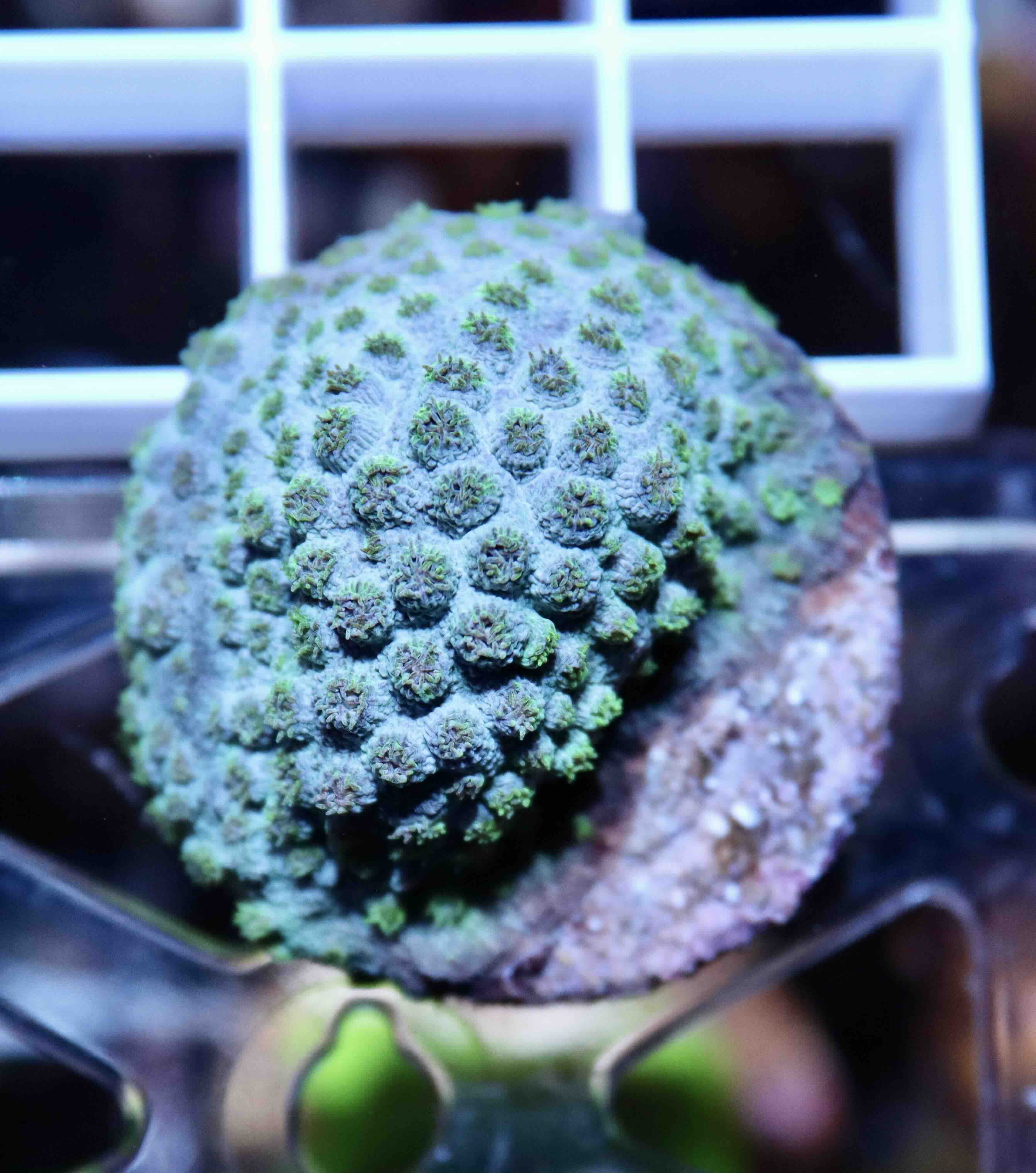 Jedno z méně dostupných zbarvení tohoto unikátního korálu. Cyphastrea nabízí modrý základ s zelené polypy.