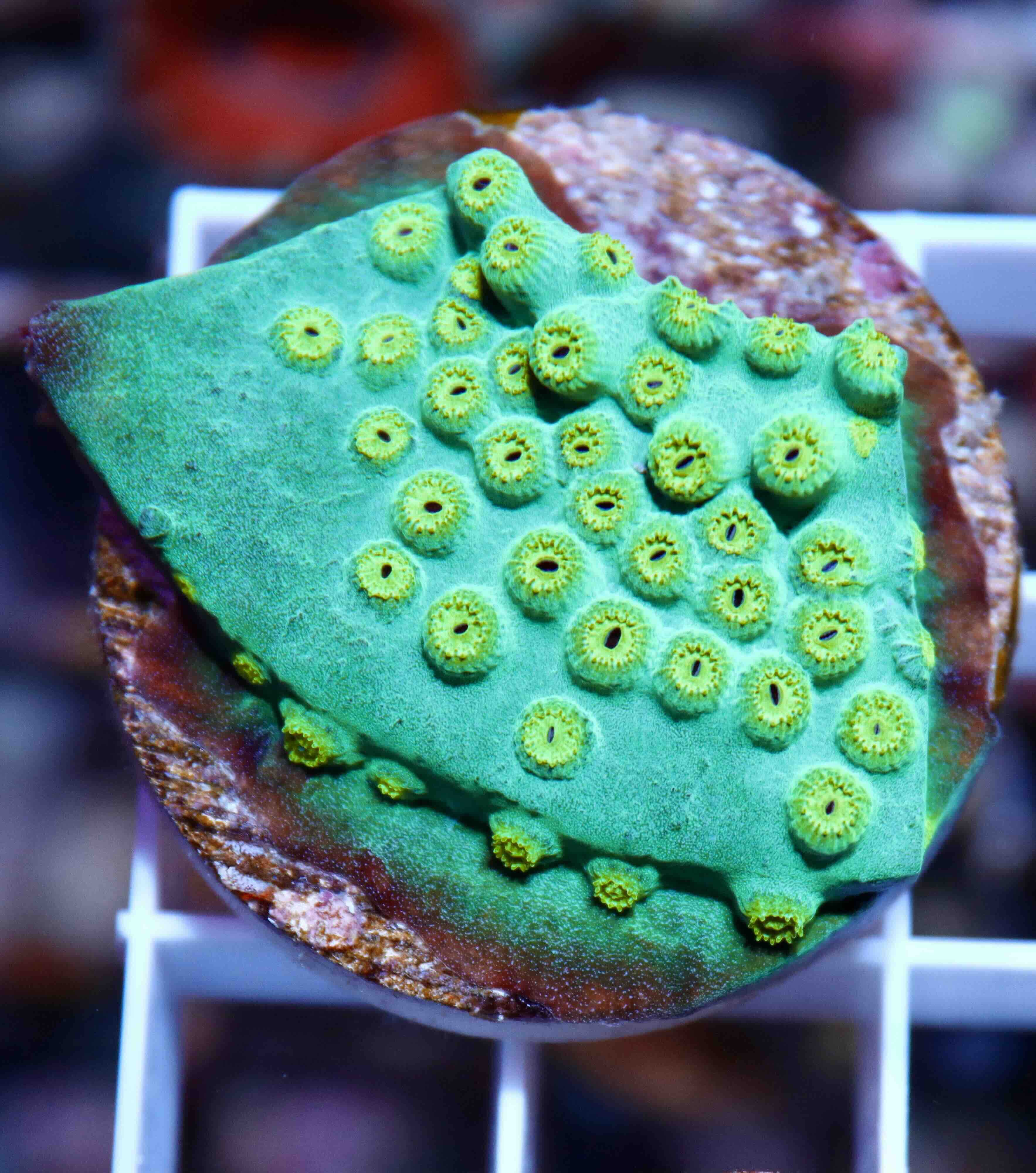 Jedno z méně dostupných zbarvení tohoto unikátního korálu. Cyphastrea nabízí výrazně zelenou základny se svítivě zelenými polypy.