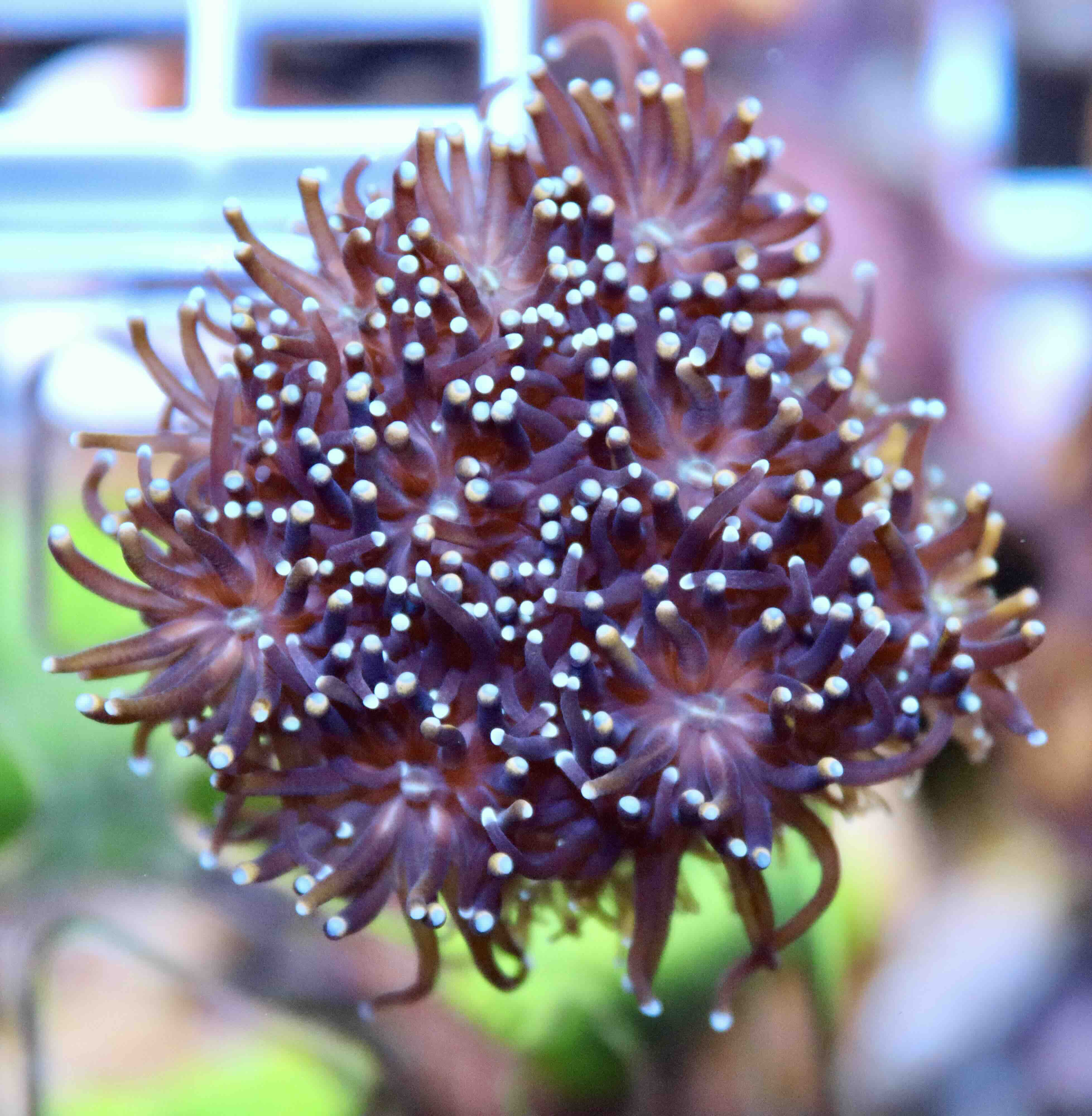 LPS korál s tmavě fialovými až purpurovými polypy a světlými, téměř perleťovými špičkami tentaklí. Působí efektem „galaxie“ a ve správném světle vykazuje zlatavé tóny. Dynamický vzhled se mění podle osvětlení