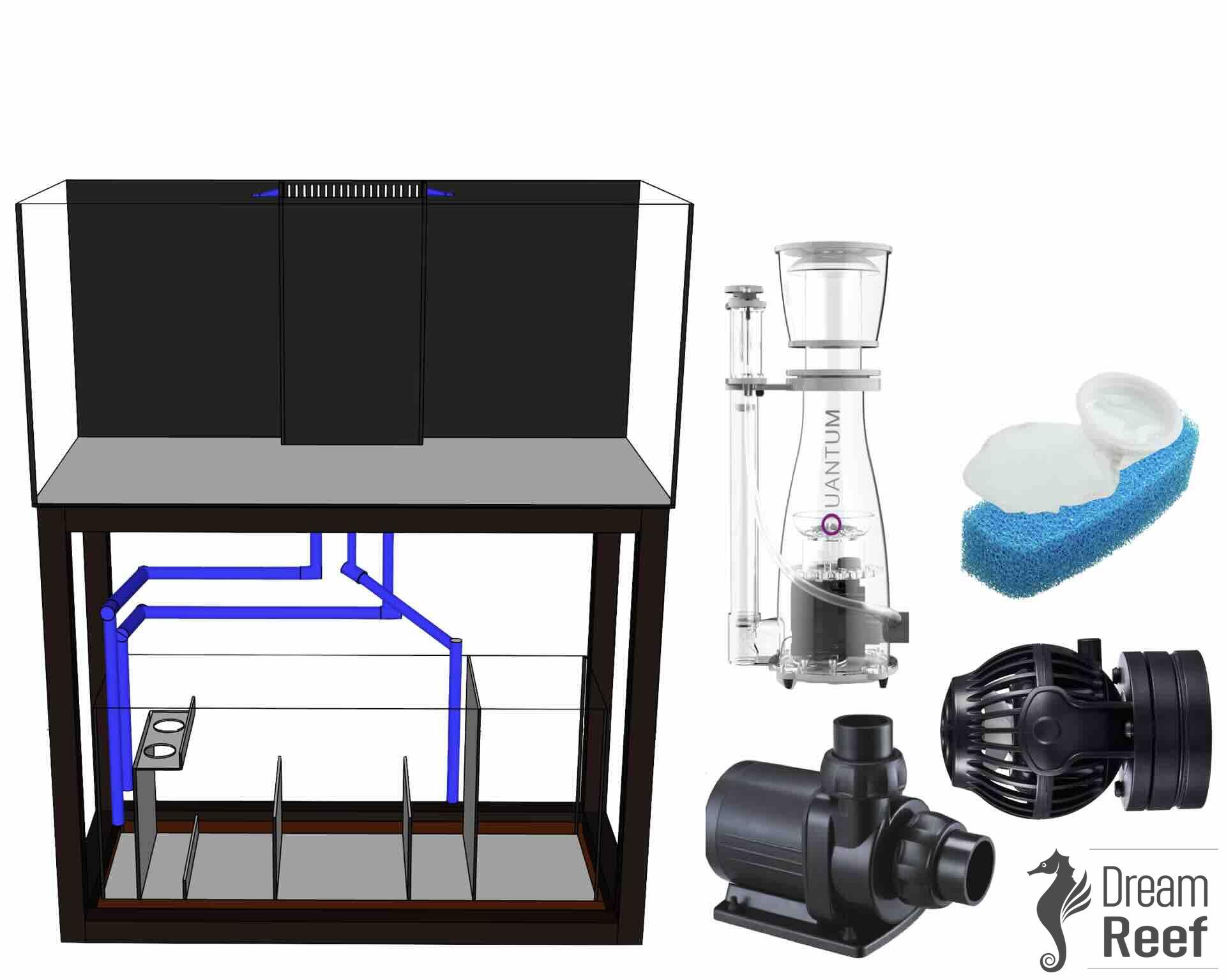 Skleněné akvárium s elegantním podstavcem, vybavené kompletním systémem cirkulace vody, včetně profesionální filtrace ("sumpu"). Přepadový kanál zajišťuje ultra tichý koloběh vody, a možnost integrovaného doplňování odpařené vody (ATO) dodává flexibilitu a pohodlí.