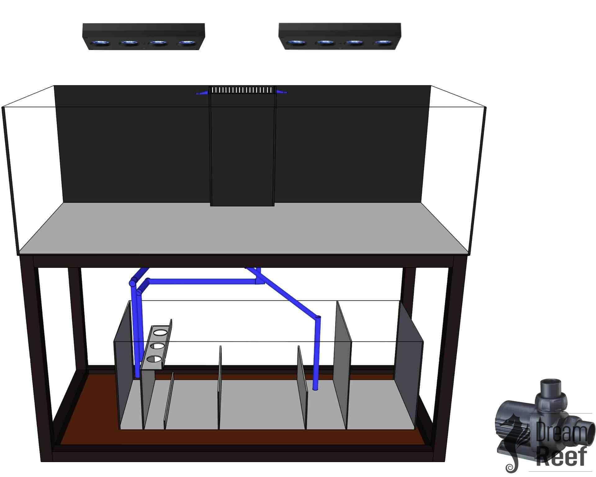 Skleněné akvárium s elegantním podstavcem, vybavené kompletním systémem cirkulace vody, včetně profesionální filtrace ("sumpu"). Přepadový kanál zajišťuje ultra tichý koloběh vody, a možnost integrovaného doplňování odpařené vody (ATO) dodává flexibilitu a pohodlí.