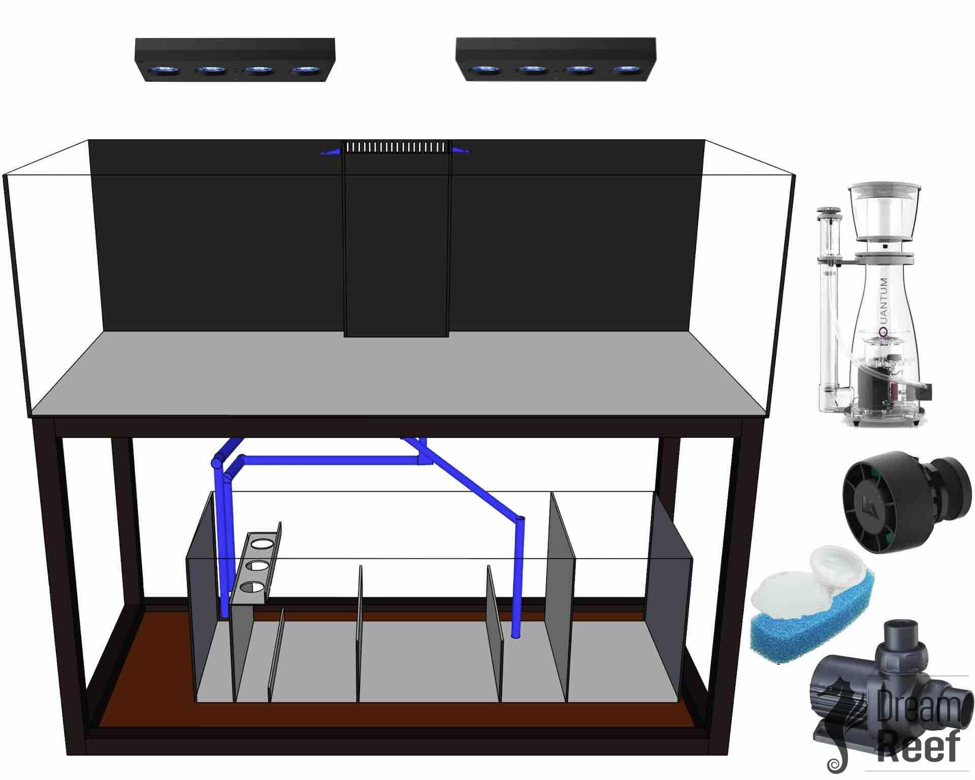 - Rozmanitost: S rozšířením objemu hlavního akvária na 430 litrů se toto akvárium stává ideální volbou pro ty, kteří usilují o pestrost mořských korálů a ryb. Pro zkušenější akvaristy představuje dokonalý přechod na větší akvárium, poskytující ještě větší rozmanitost a krásu mořského života."