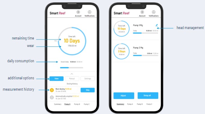 K ovládání zařízení vám stačí zdarma dostupná aplikace Smart Reef pro Android, iOS nebo webový prohlížeč.